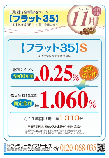 11月フラット35S金利情報 【富士支店】