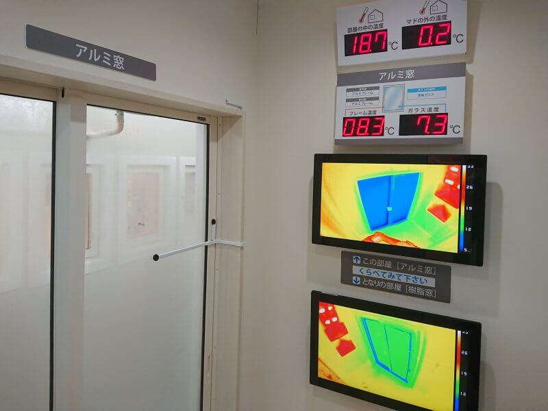樹脂の窓は結露もなくほどよい気温に対し、アルミの窓は入った瞬間寒さを感じ窓に結露が・・