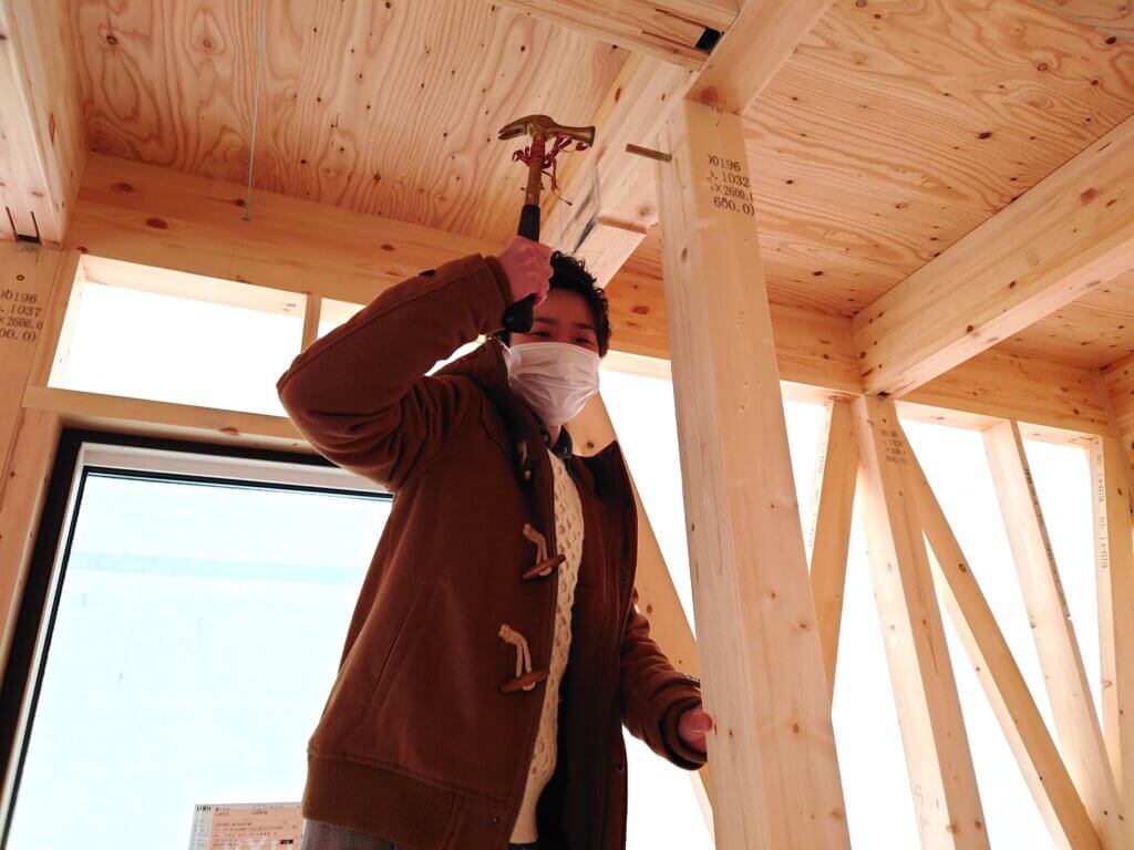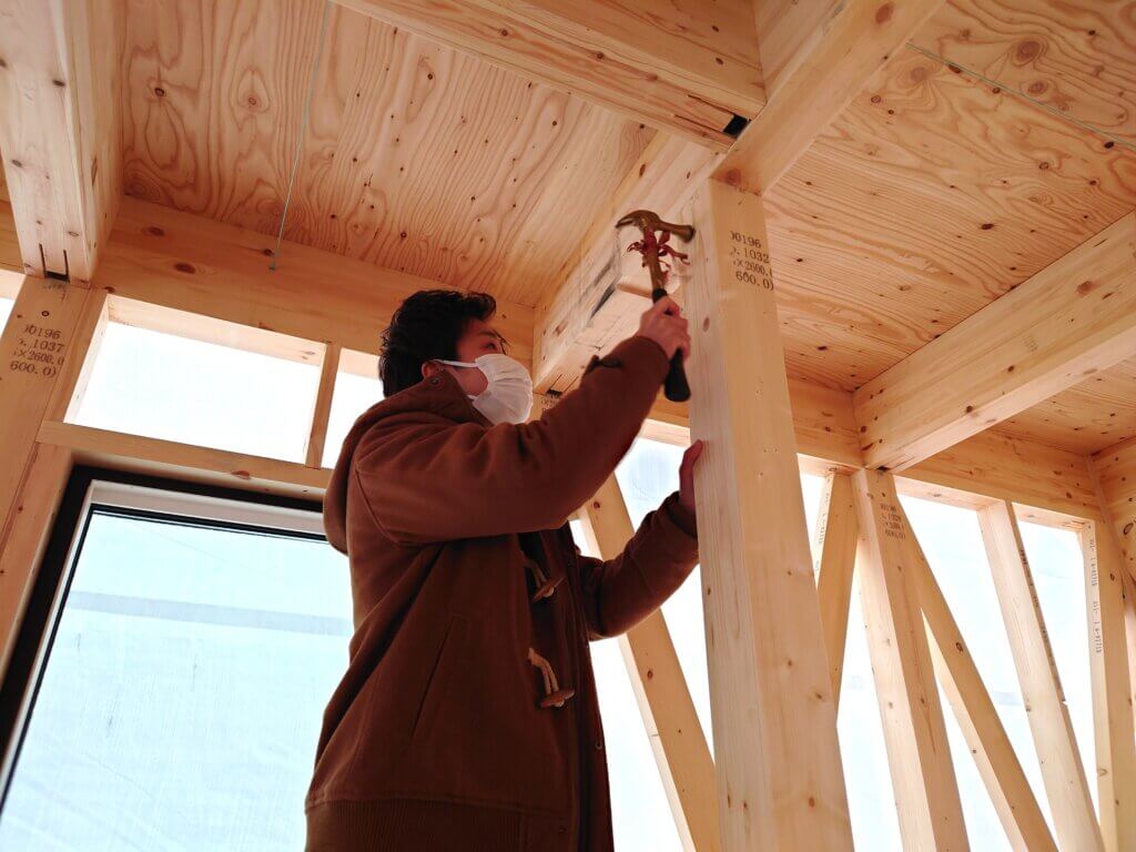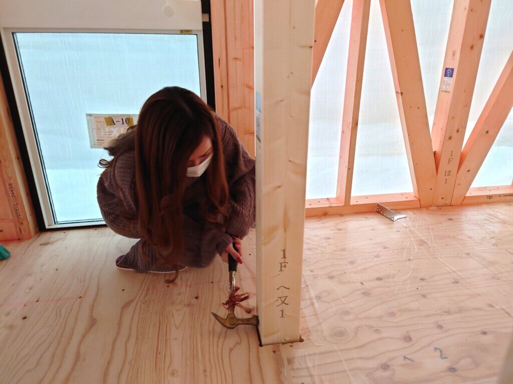 そして実際にピンを柱に打ち付けていきます