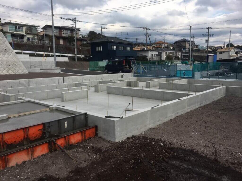 現在は基礎のコンクリート打設・基礎の立ち上がり部分が終わり