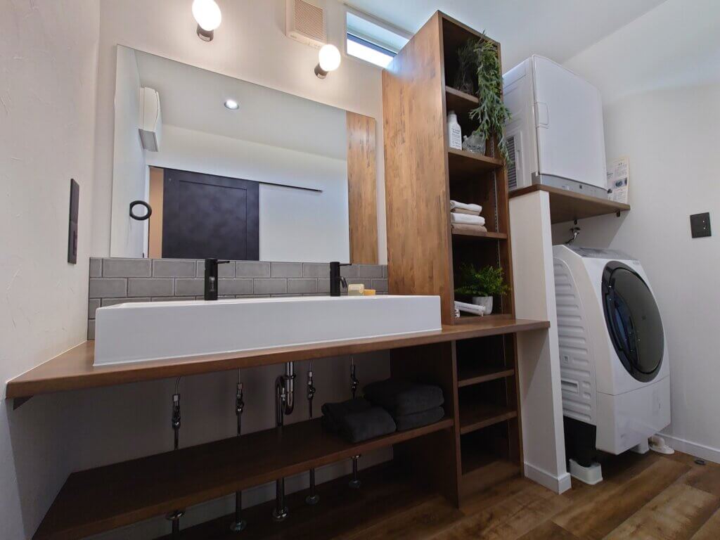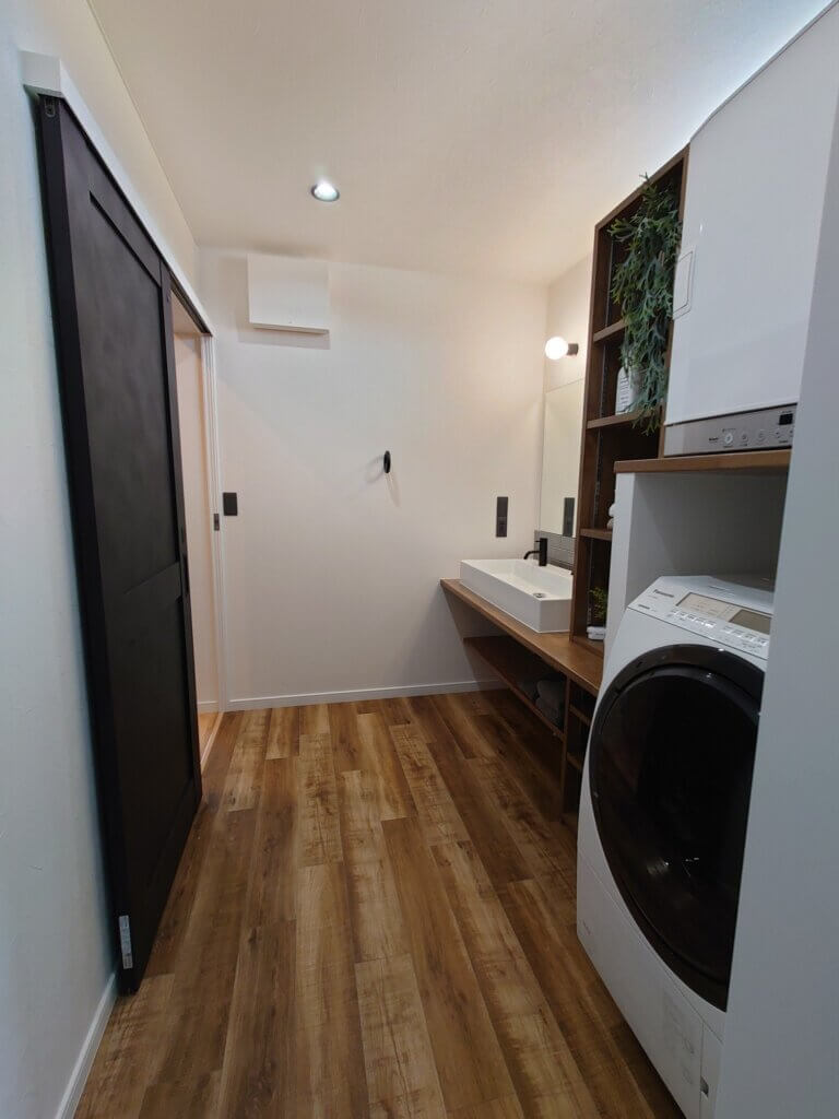 使いやすさと縦並びにした時の洗濯動線を確認していました