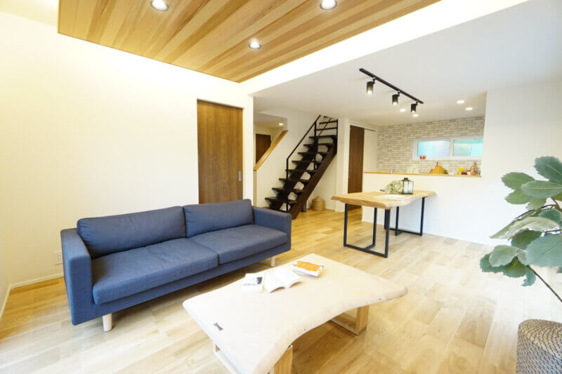 リビングの天井はレッドシダーのフロート天井。