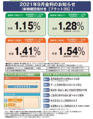 フラット35の9月の金利が発表されました。