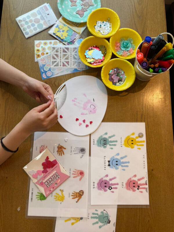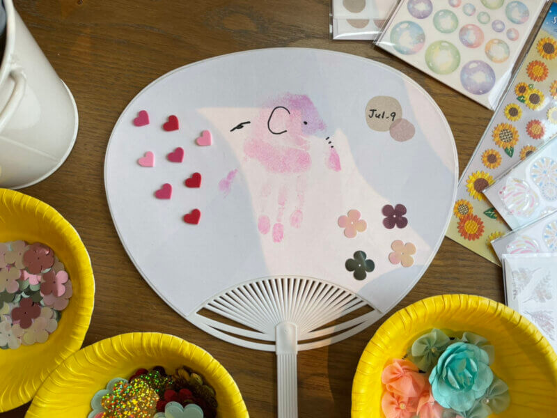 そのポイントもうちわ手形アートにて