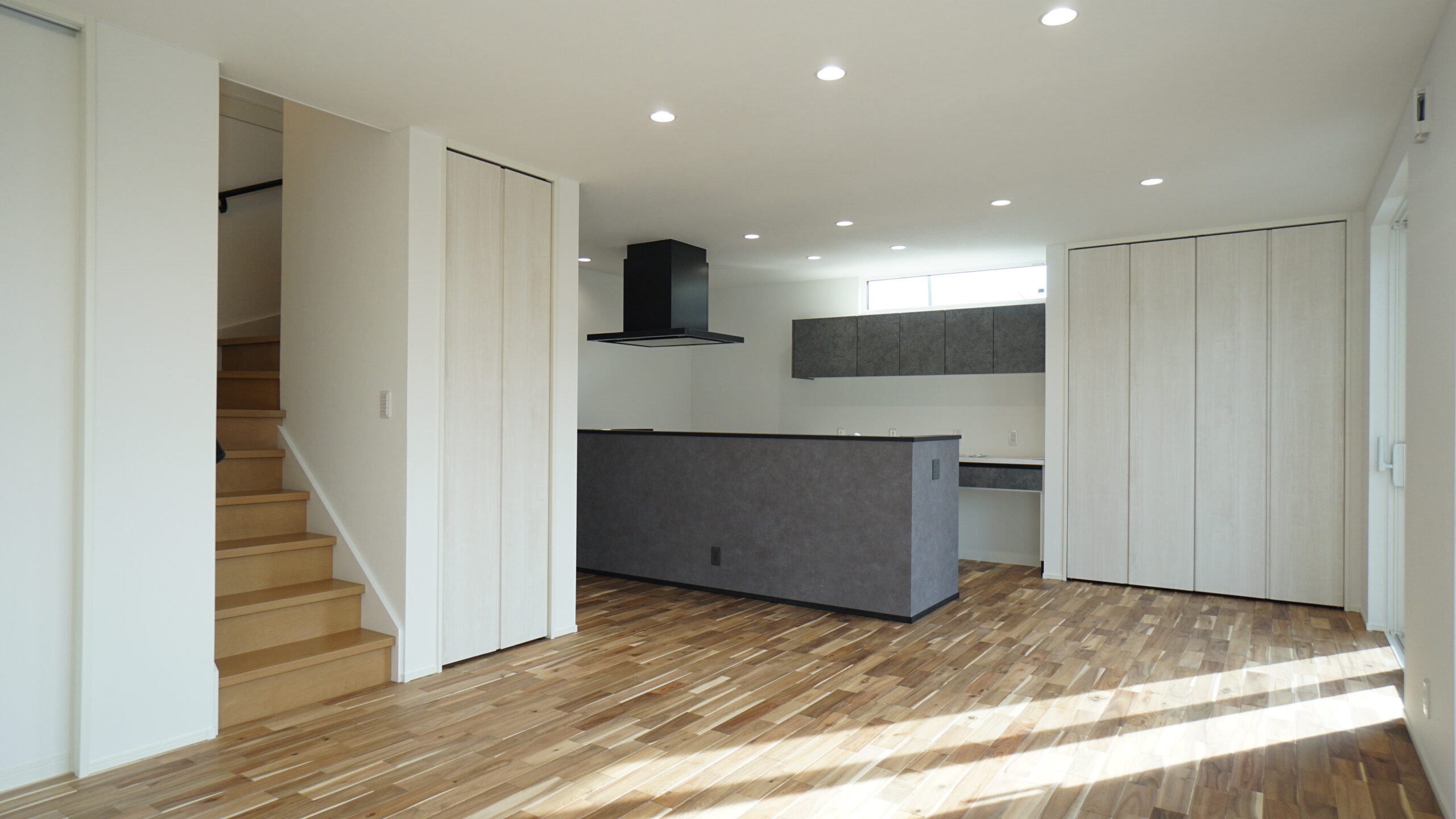廊下を極力少なくし、ぐるぐる回れる生活動線を考えた間取りも見どころです。