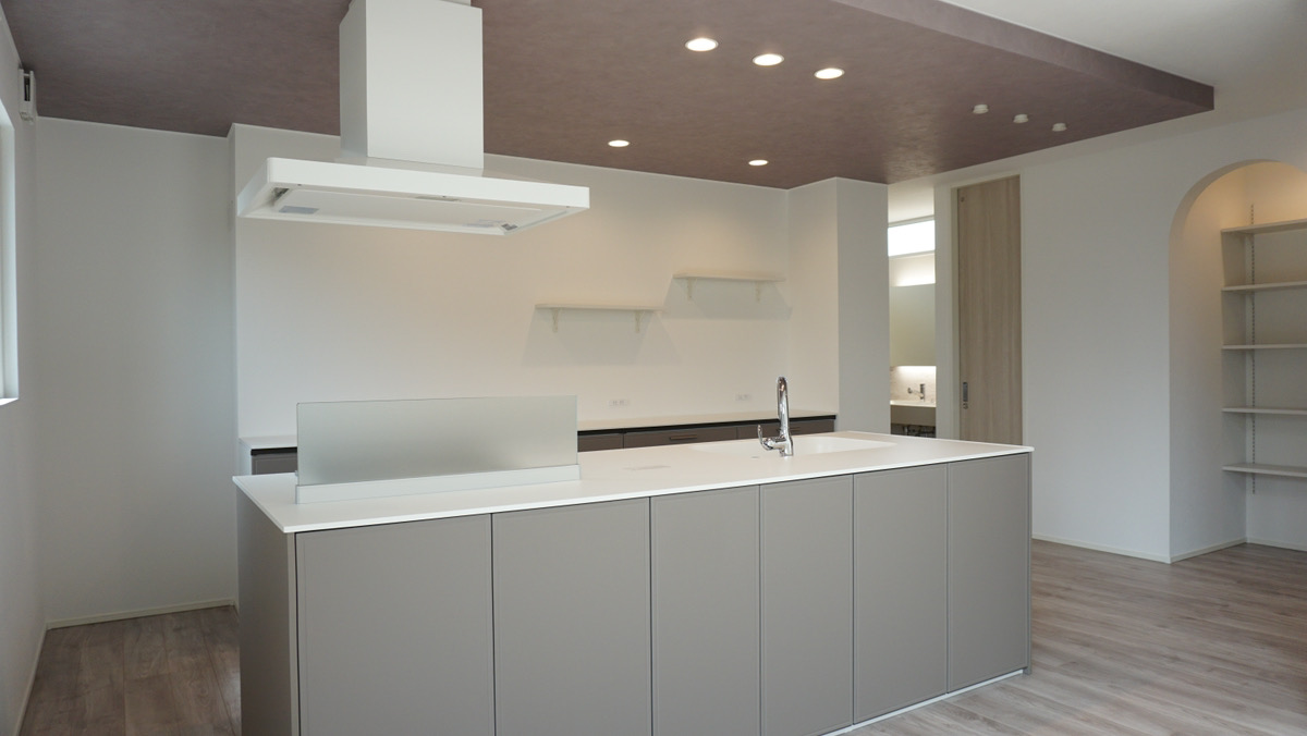 グレージュでまとめたカフェのような素敵な内装。