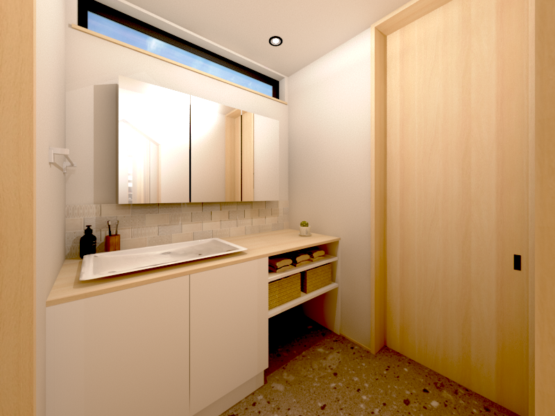 木工屋さんにオーダーして造る、造作洗面化粧台。