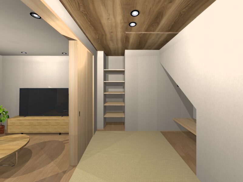畳コーナーにも収納できる棚を設けました。