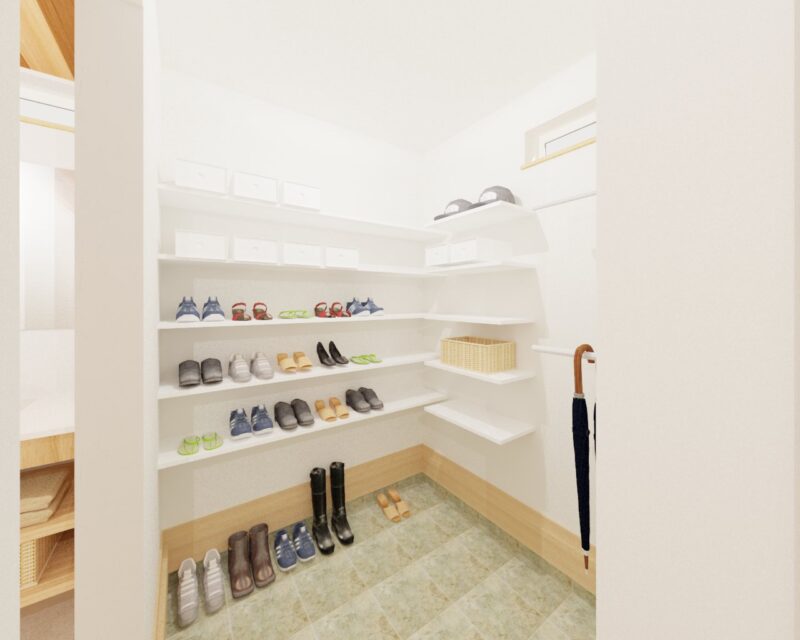 こちらのお住まいも、土間収納とランドリールームを設けていただきました。