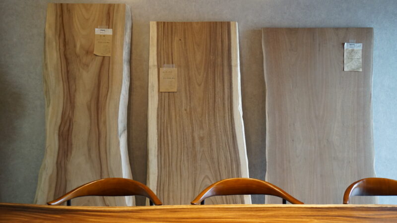 藤枝支店にも無垢の一枚板テーブルを展示していますので、