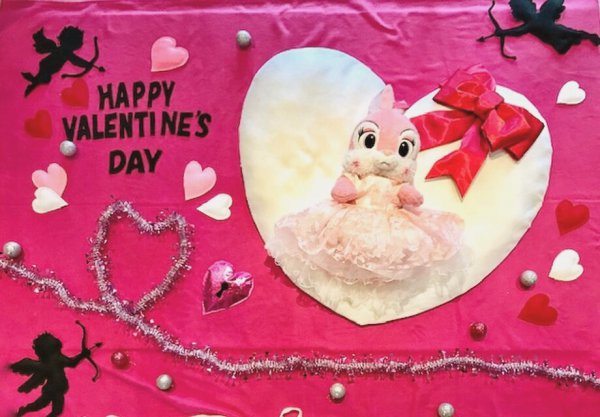 バレンタイン限定の商品はもちろん、ばぶちゃんアートもバレンタインバージョンでおとどけ!
