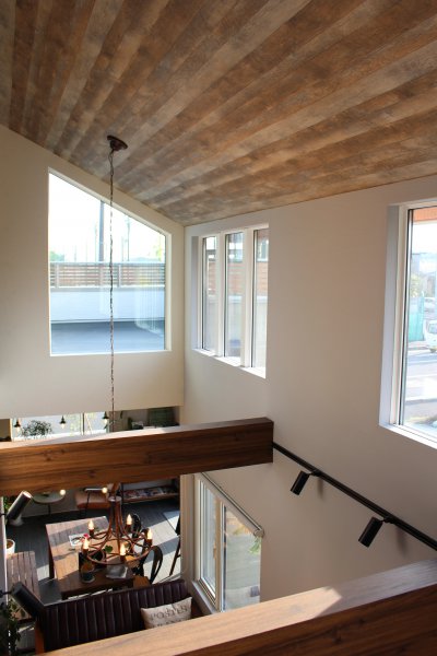 大きな吹き抜けや大きな窓があり、スキップステージや趣味室があったり遊び心いっぱいなお家。