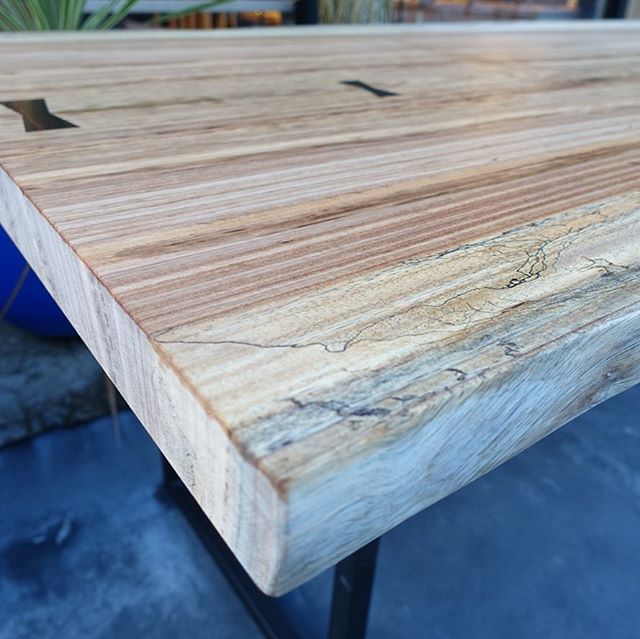.黄味がかったクリーム色の木肌に、茶色の筋。はっきりとした縞模様が特徴の、西アフリカ原産「ベリ」一枚板。.◆MUKU-TEN ベリW2000×D770〜830¥175,000+tax(塗装費込み).その他販売中の一枚板や納品事例については#mukuten↑こちらのタグをチェック!.#mukuten#一枚板テーブル #ベリ