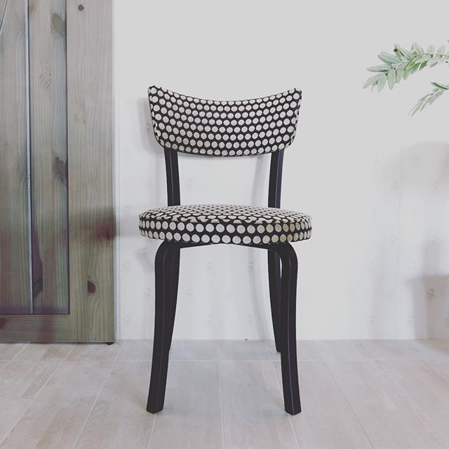 ブラックペイントのオークフレームにドットファブリックがキュートでシックなCuteチェア35,000〜37,000yen+tax展示中です。#椅子#chair#オーク#ドット柄#cute#home