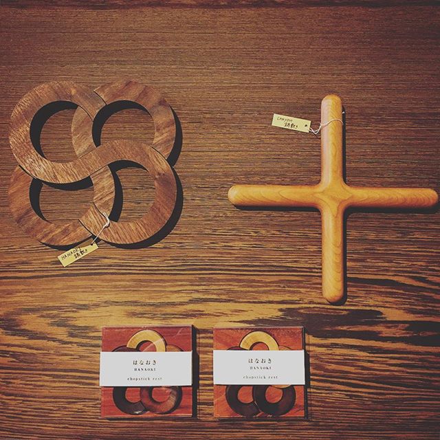 天然木の鍋敷きと箸置き ラ・ルース HANAOKI鍋敷き 5,000yen+tax Crayon鍋敷き 3,800yen+tax HANAOKI箸置き5個セット3,000yen+tax