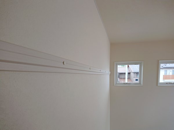 子供部屋の壁に設置したハンガーが掛けられる長押。