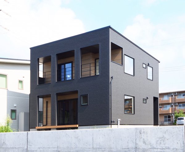 外観は四角いキューブ型の形で黒ベースでアクセントに木目調が