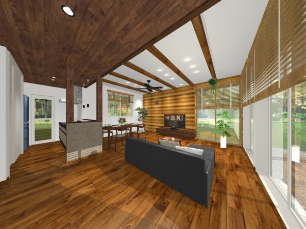 『背の高い窓の並ぶLDKのあるお家予約制見学会』