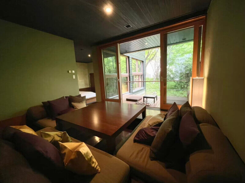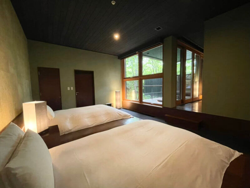 周囲の森に溶け込むように点在する客室は、