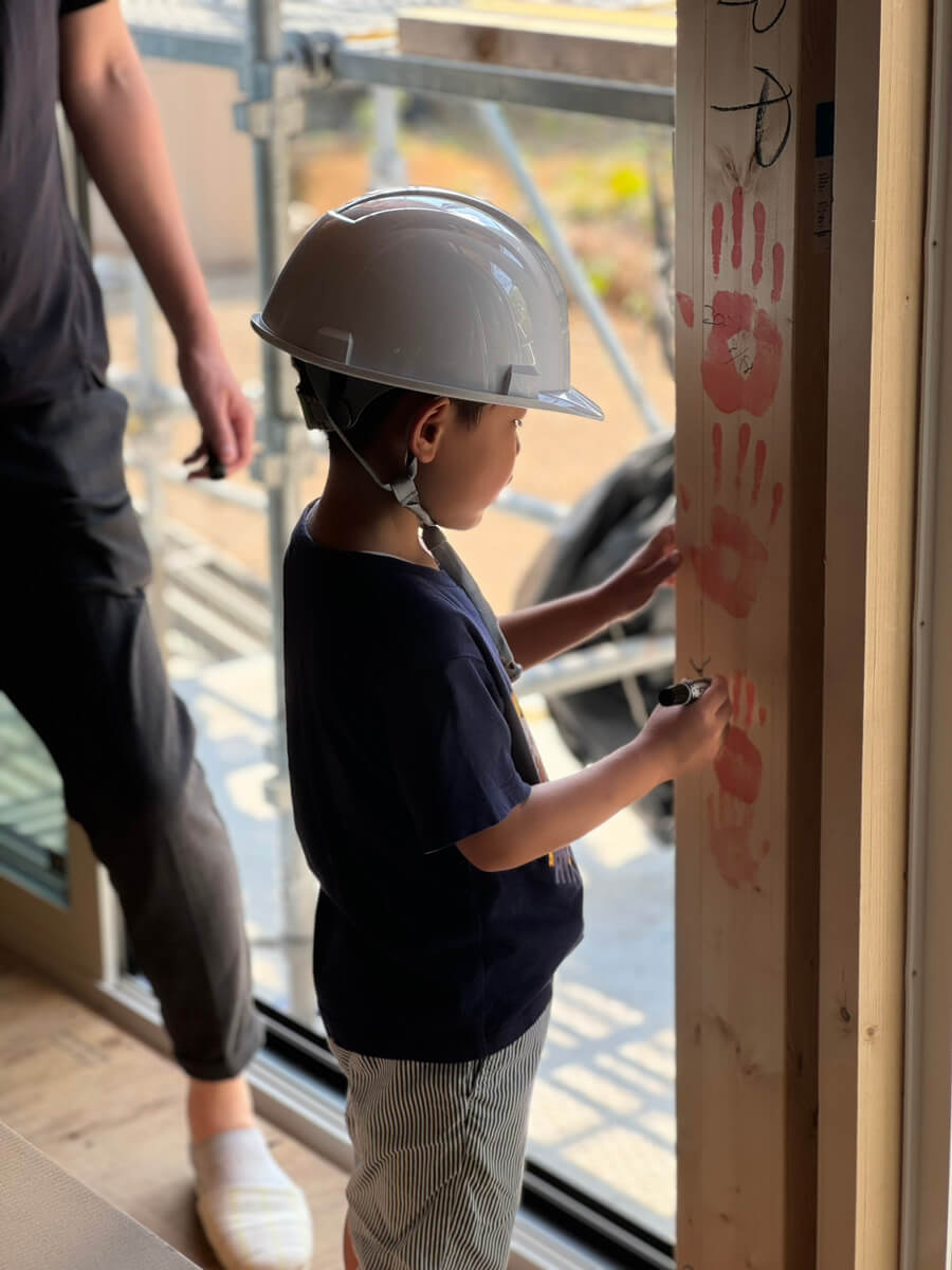 上棟記念に柱にご家族の手形を✋