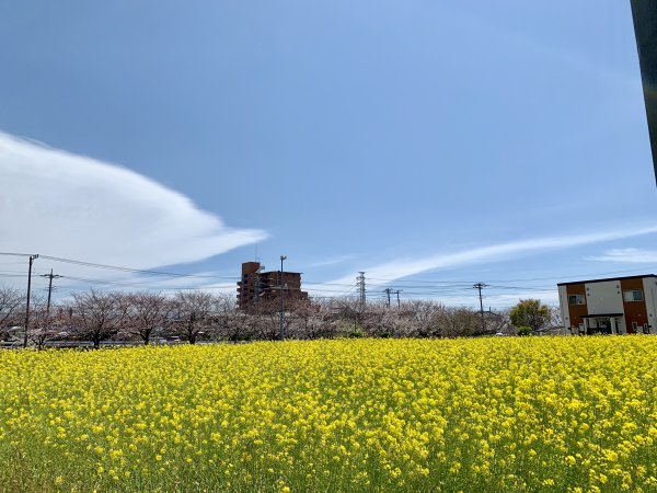 先日、お仕事中に見つけた長泉町桜堤の桜と菜の花です🌸