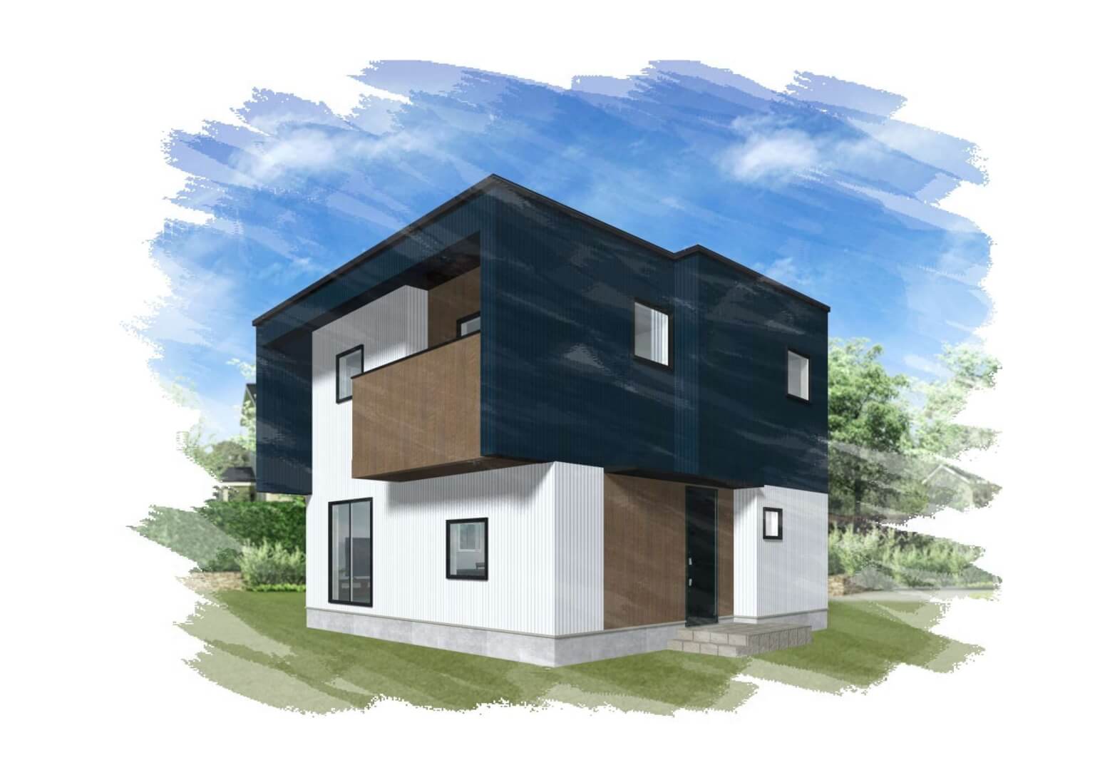 木目の外壁を使用し、少しナチュラルな印象も与えます。