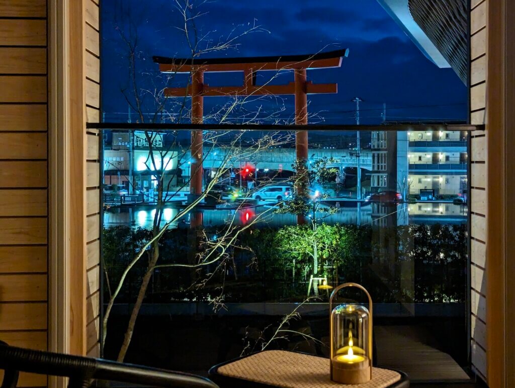 ゲストルームのラウンジバルコニーからは、浅間大社の一之鳥居と