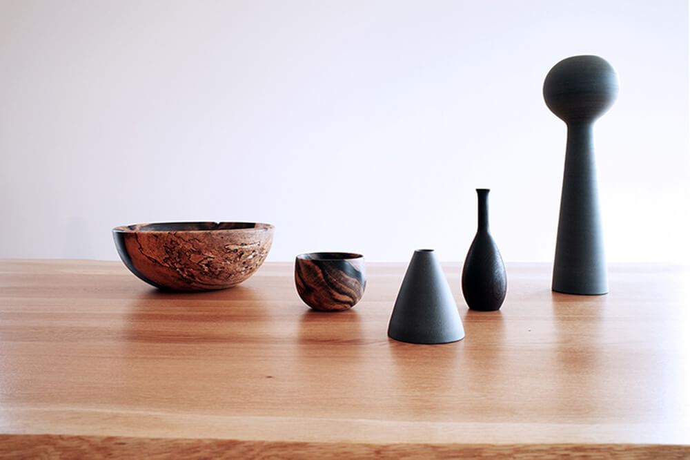 木と土、自然素材の魅力を生かし、独自のフォルムを生み出すふたりの造形に