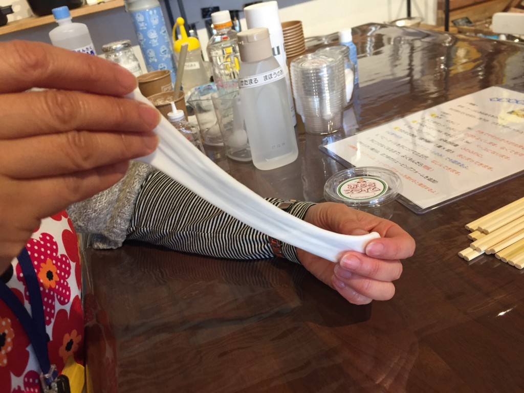 また、インテリアショップHANARE ALTANAでは、お子さま向けワークショップ「おもちスライムづくり」が開催されました。