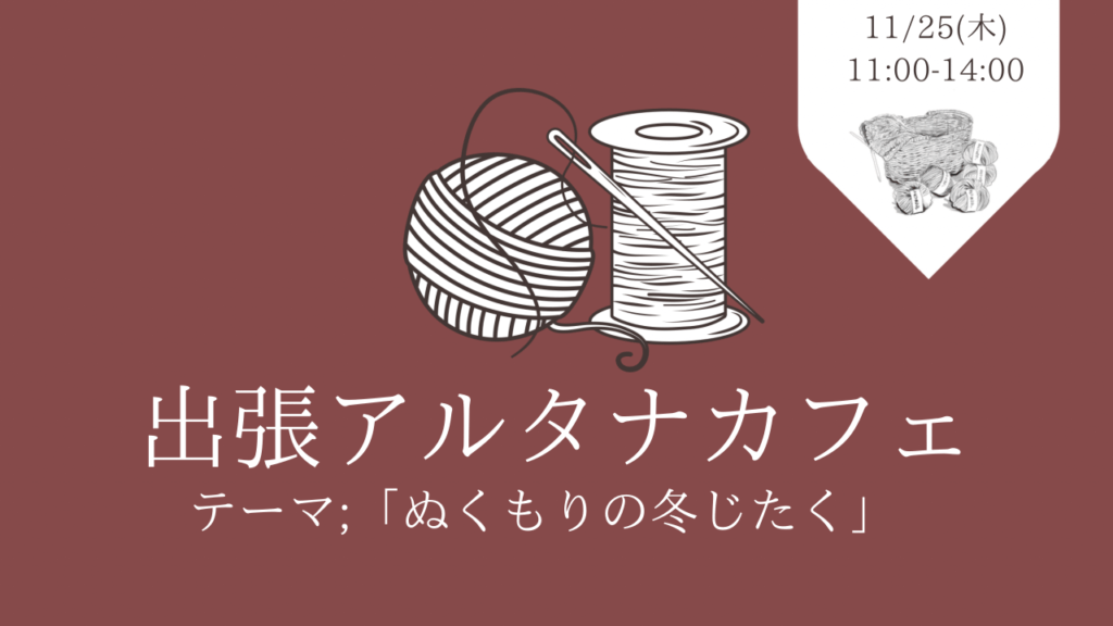 11/25(木)当日は、同会場で「出張アルタナカフェ~11月テーマ;ぬくもりの冬じたく~」を開催中!!