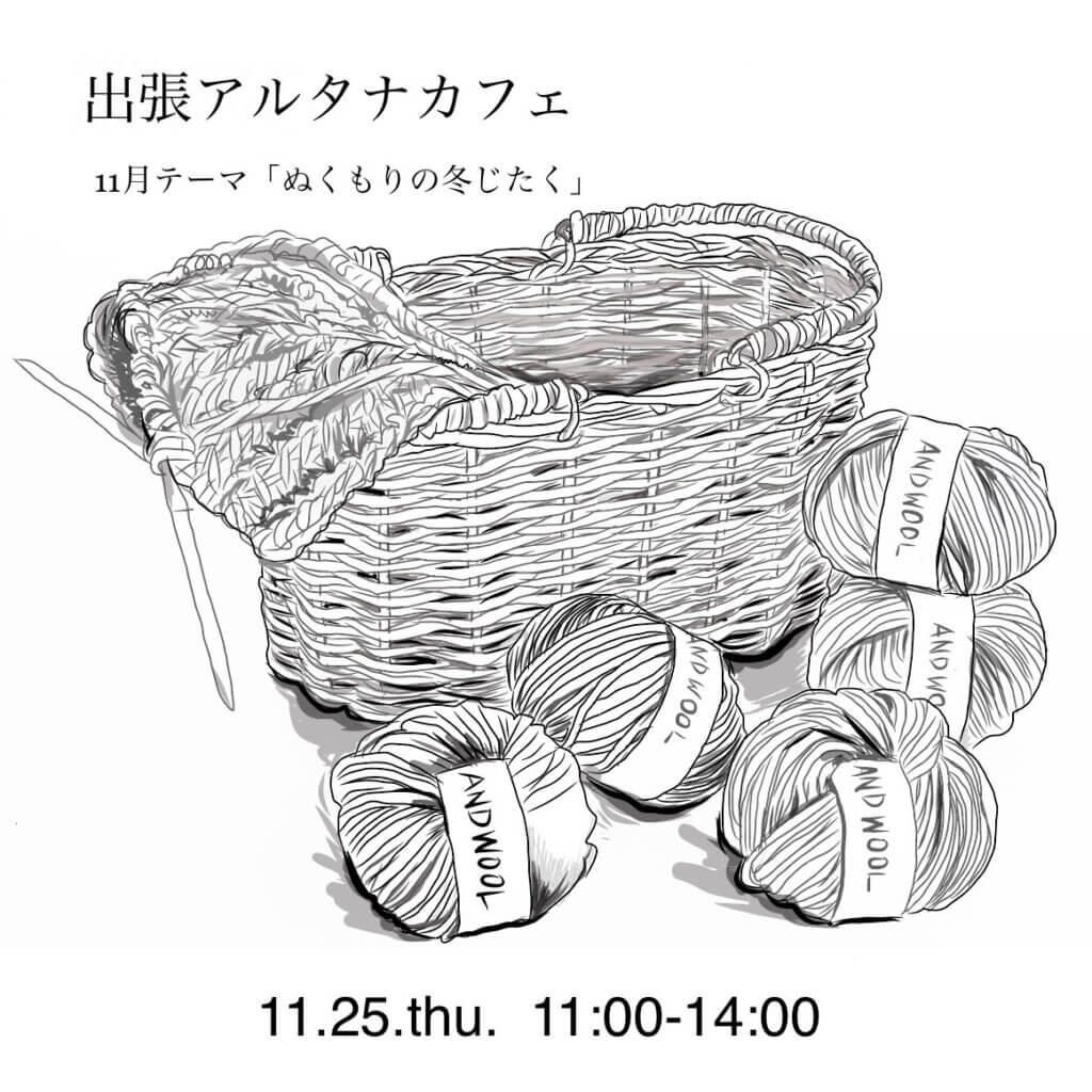 今回の「出張アルタナカフェ」は「ぬくもりの冬じたく」をテーマに行います。