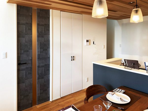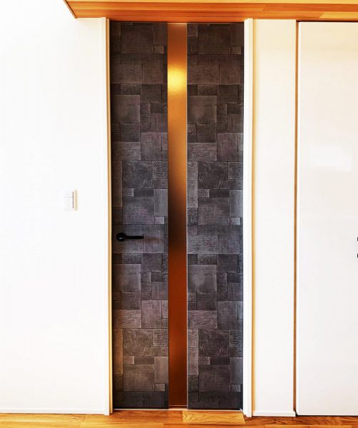 高感度なデザインのメラミン化粧板をリビングドアにしました