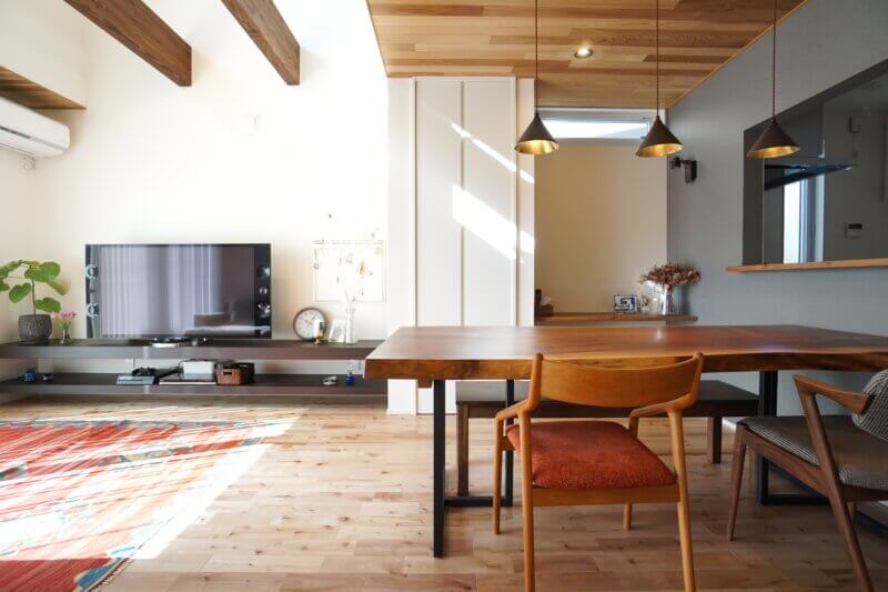 『レッドシダー天井と吹抜けの或るリビング』の家