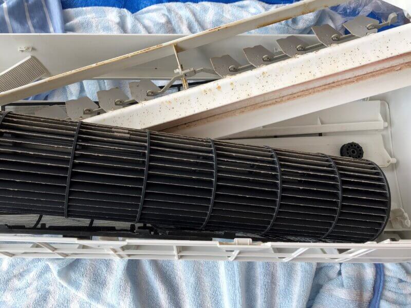 エアコン内部は湿気がたまり、カビが発生しやすくなるとのことでした。