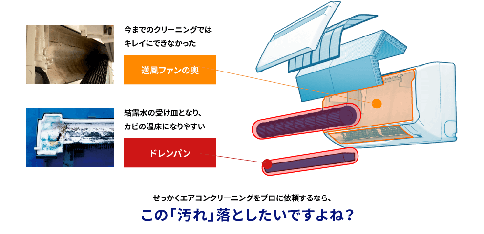 エアコン内部は湿気がたまり、カビが発生しやすくなるとのことでした。
