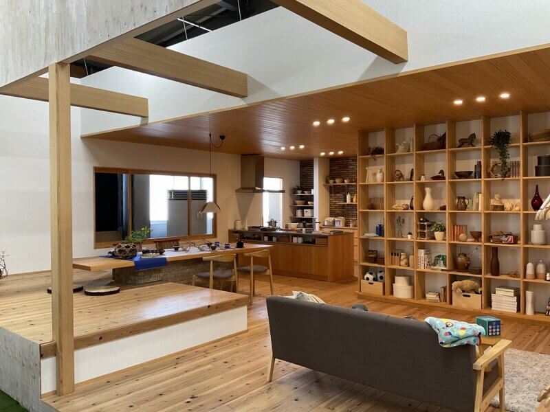 (小上がりのダイニングに寝転がって感じる木の感触、見上げる天井の木目、ついつい長いしたくなる居場所です。)