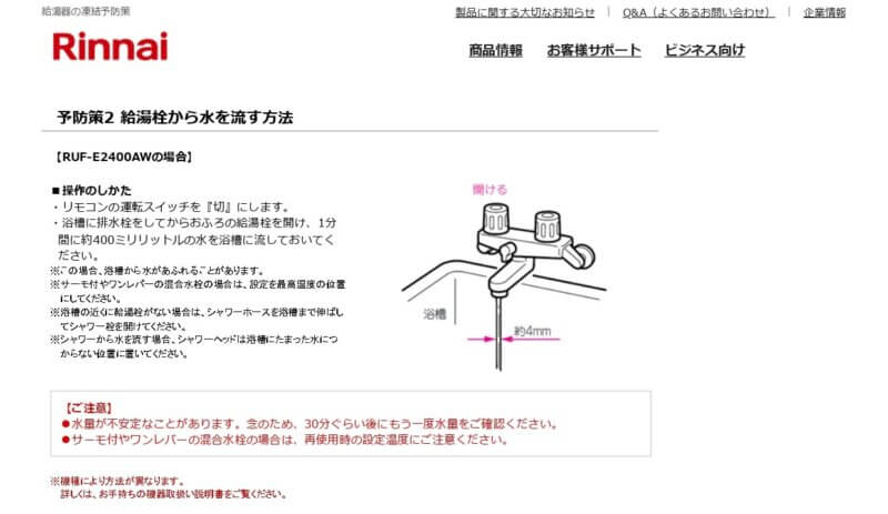 大寒波が予想される場合は、お風呂の水道の水を細く出しっぱなしにするなどの