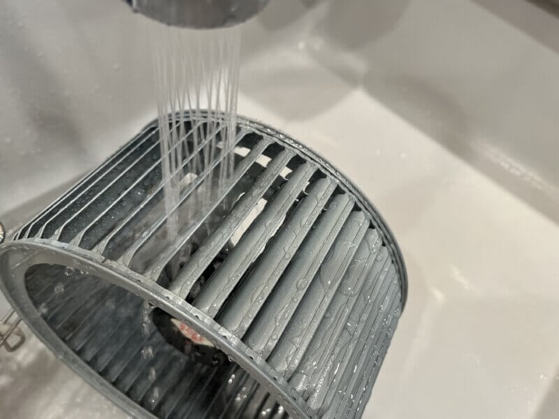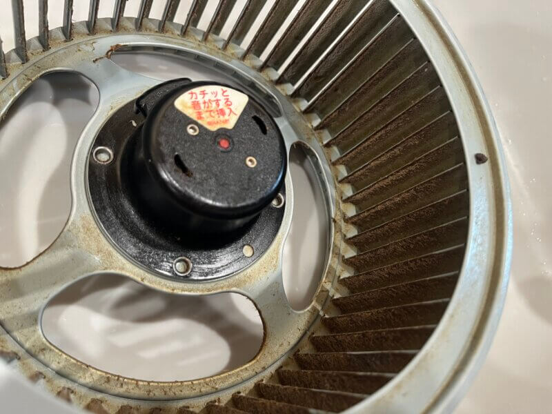 まずは、羽の間に油汚れが付いているファンに、お湯をかけます!