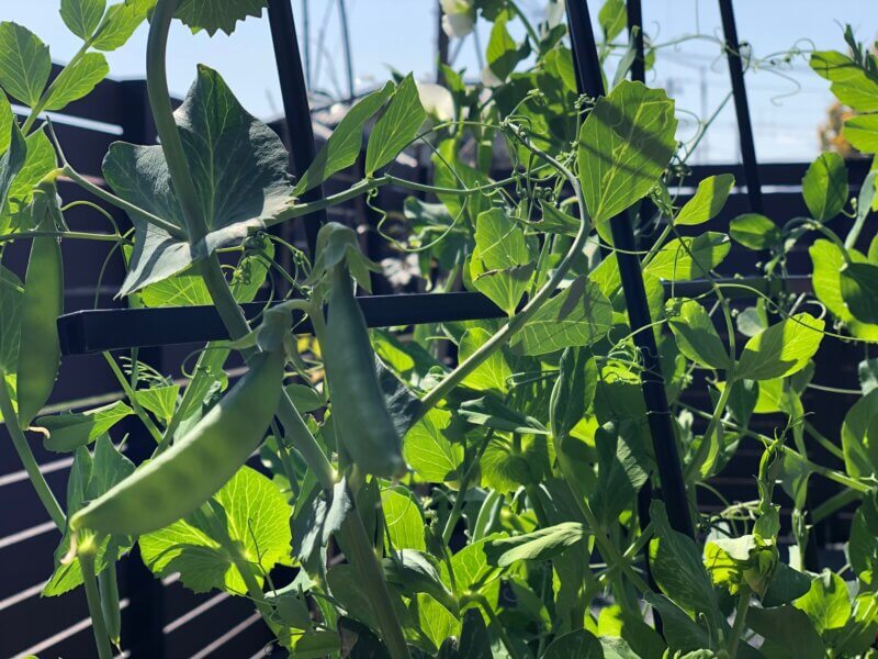 お花の水やりや、スナップエンドウの収穫も日課のひとつになりました。