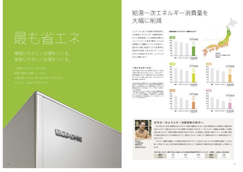 その秘密は、ガスと電気のハイブリット給湯器『エコワン』