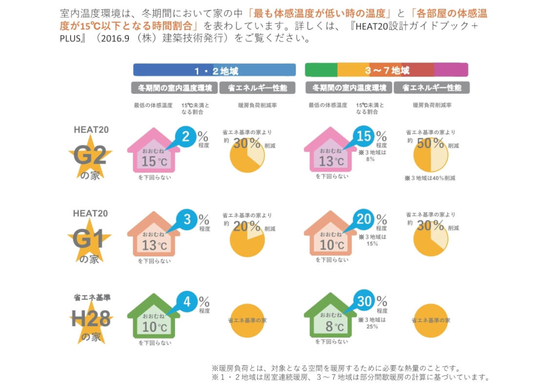 HEAT20G2グレードの家では、室温がおおむね13℃を下回らない性能となっています。