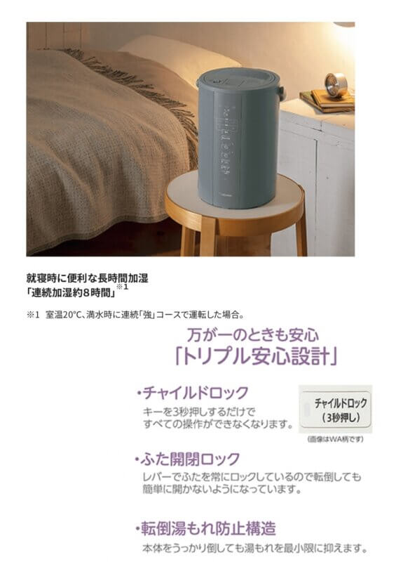(超音波式に比べて、過湿時に室温が下がらないように感じます。)
