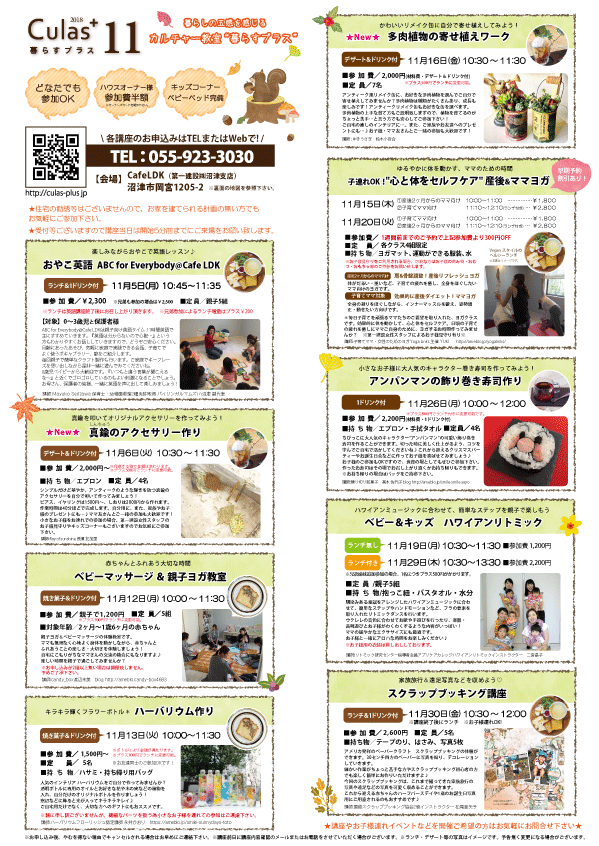 11月のカルチャー教室「暮らすプラス」のご案内です。