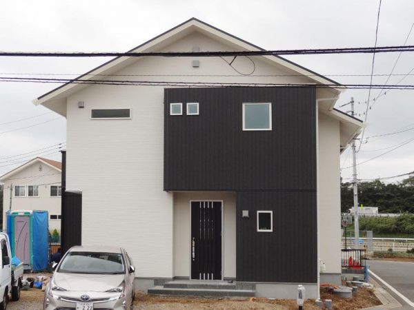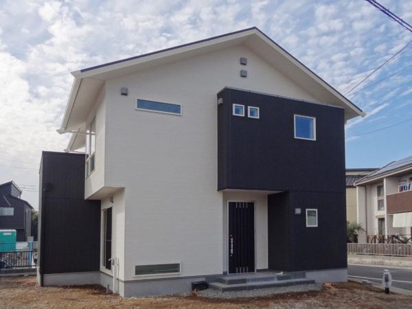 今回は、敷地が北東の角地と言う事も有りまして3方向からの外観バランスを考えて