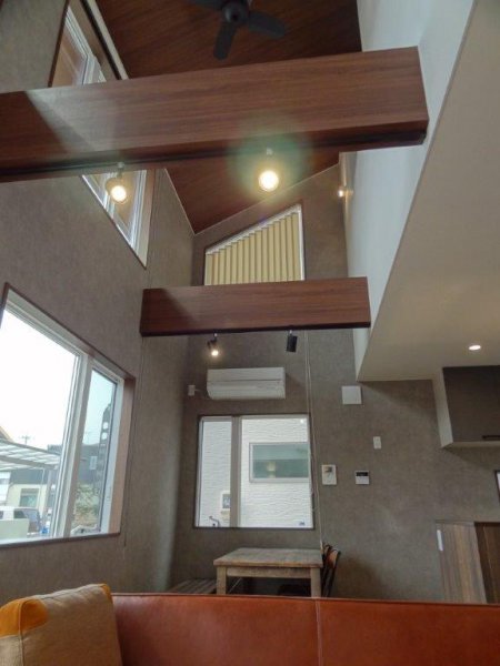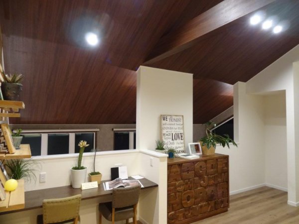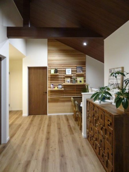 吹抜け勾配天井の特徴をいかしながら、お客様の要望を総て取り込んだ素敵なお住まいです。