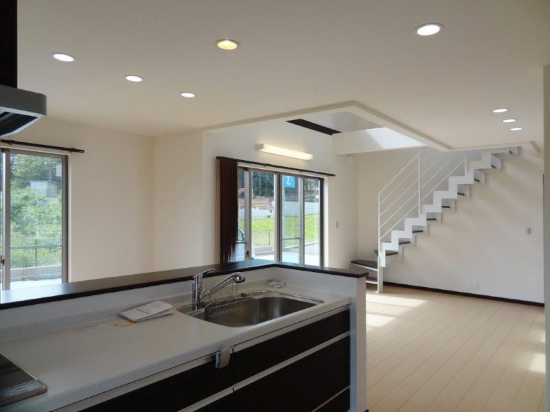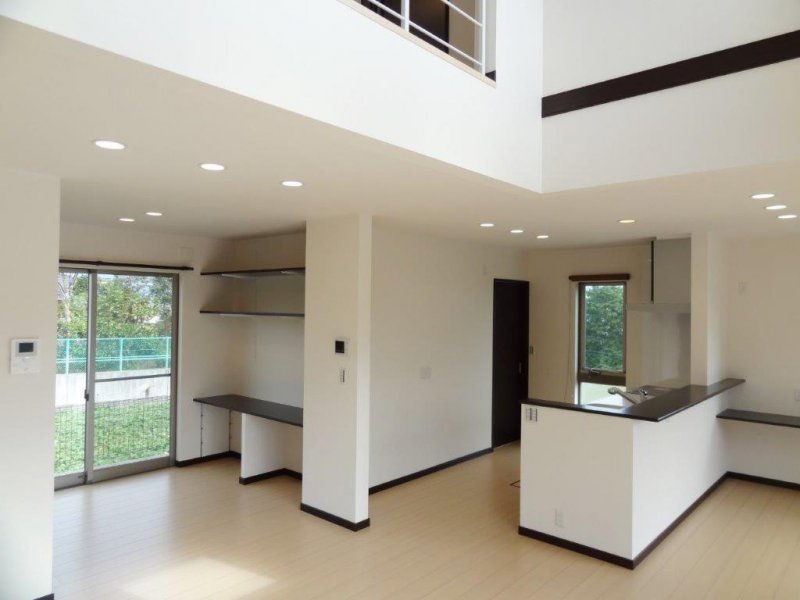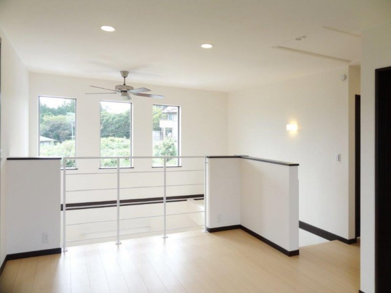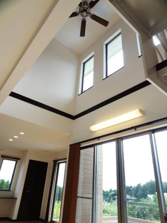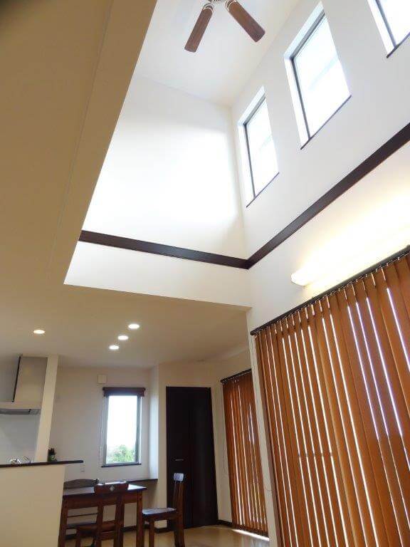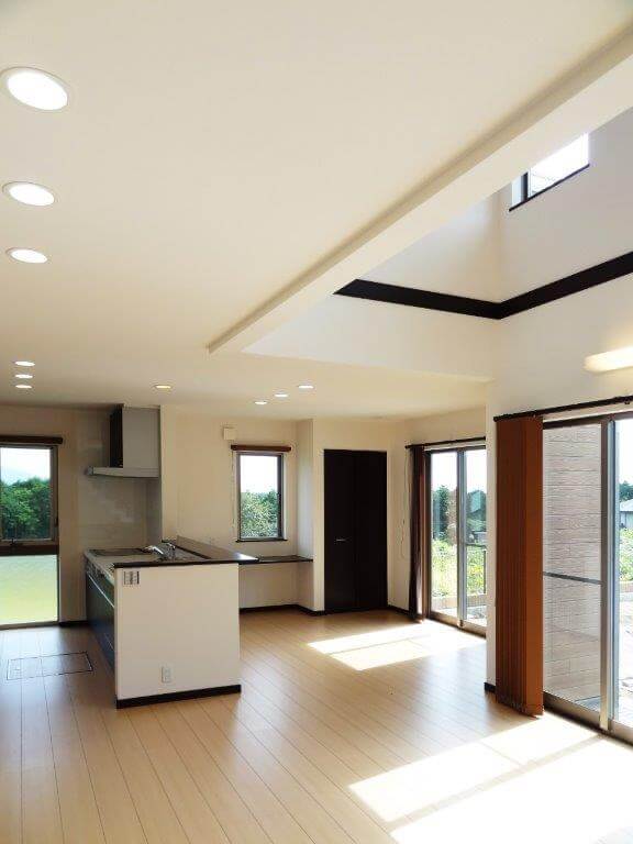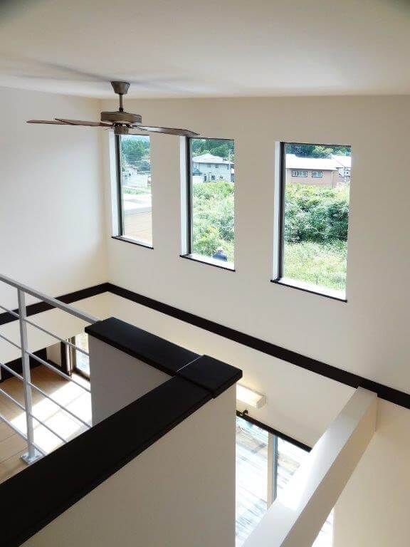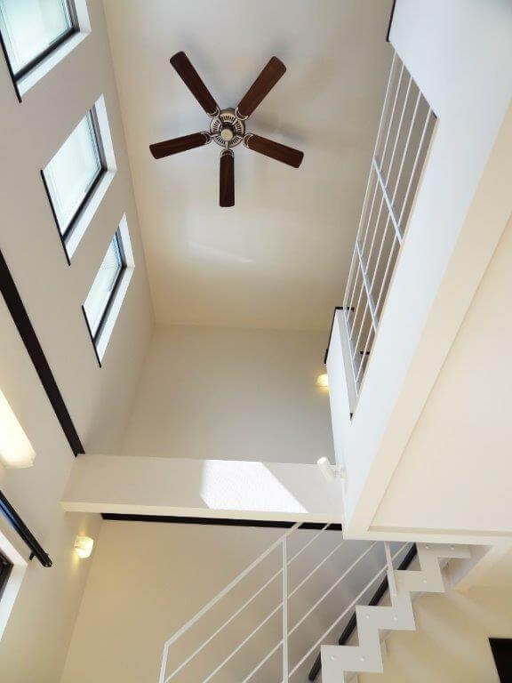 Andy切妻タイプで、22畳のLDKと広い吹抜け内に設けたアイアン階段で2階サブリビングからも眺められる間取りです。