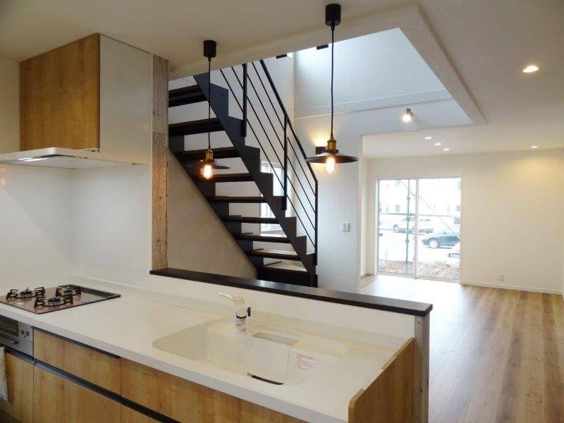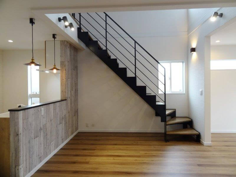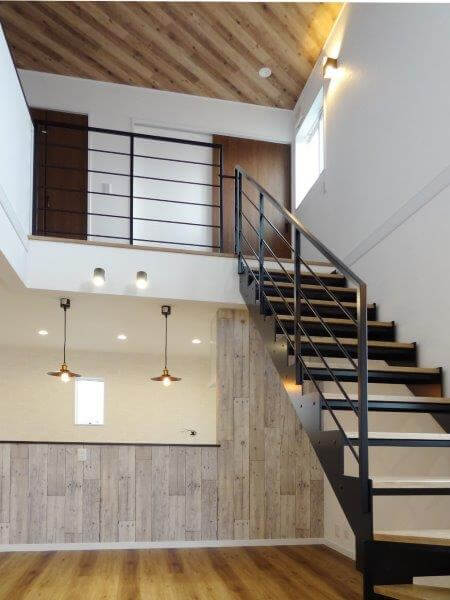 拘りイッパイのお住まいです。特にLDKの吹抜けとアイアンの階段からの