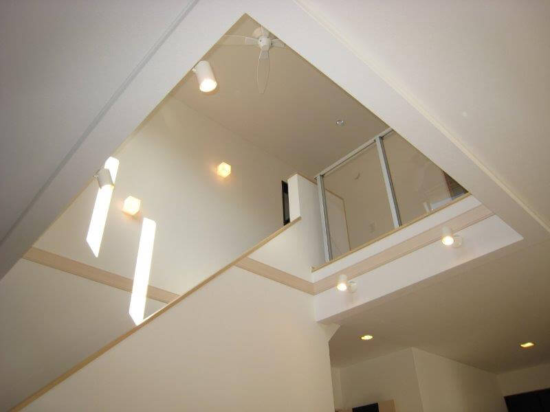 24帖のLDKは吹抜けとシースルー階段を組み合わせまして、今も思い出に残るお住まいです。