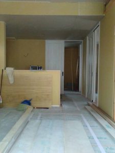 ここから約1週間クロス工事を行い、設備器具、照明器具を取り付けてクリーニングを行います。