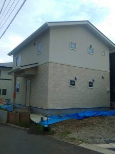外部も足場がとれ、ここから玄関タイル施工を行っていきます。